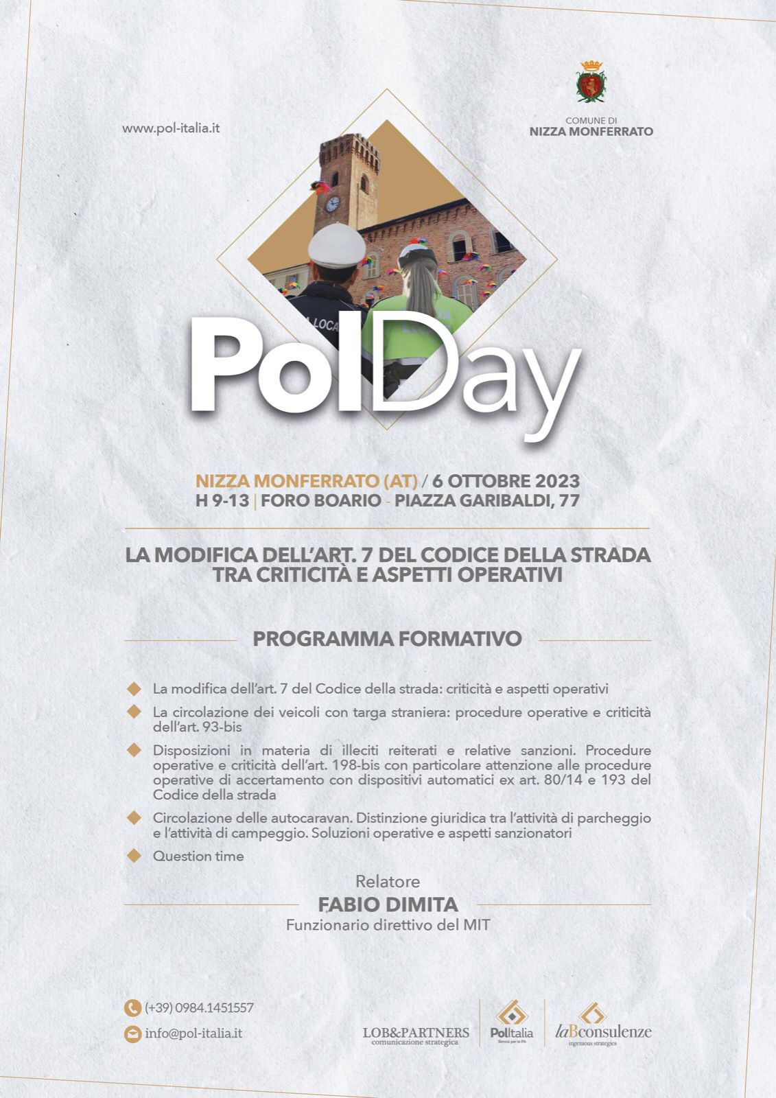 Si prega di confermare la partecipazione all'indirizzo mail polizia.municipale@comune.nizza.at.it